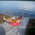 Für den Nachmittag des Tages hatten wir allen Teilnehmern einen letzten Seetag versprochen, da am nächsten Tag schon der Abbau beginnen sollte. Als sich alle am See versammelt hatten, tanzten wir gemeinsam den Tanz zu unserem diesjährigen Lagerlied und starteten danach noch ein „Spiel“, welches sich rasch als die Lagertaufe entpuppte. Den Teilnehmern wurden die Augen verbunden und alle wurden einen Waldweg entlang geführt. Nach dem Parcours wurde jeder Täufling auf eine Luftmatratze gelegt und in den See geworfen.