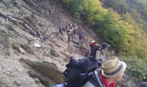 Nach einer langen Wanderung erreichten wir die mittelalterliche Burganlage, wo wir dann eine Traumhafte Landschaft genießen konnten. Da wir keinen Schlafplatz fanden, wurde uns von der Burgverwaltung die Telefonnummer eines Försters gegeben, der uns dann eine Grillhütte zur Verfügung stellte. Trotz der Regenschauer konnten wir die Nacht dank der Behausung trocken und warm verbringen.