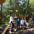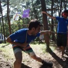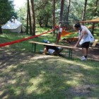 Vier Gruppen starteten erst in Einzeldisziplinen: Wassertransport, PET-Flaschen-Schätzen, Schmecken, Merken und Tiefseilparcours. Nach einem Mittagssnack ging es in den direkten Wettkampf. Boule, Wasserflaschenhochhalten, Elefantendrehstaffel, Götterspeisewettessen und nach einer kurzen Regenschauer noch die Lavaüberquerung mit einem Baumstück, einem Skim-Board und einem Stück Papier. Außerdem mussten während des Tages eine Reihe von Anagrammen gelöst sowie 1 kg Tannenzapfen gesammelt werden.