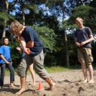 Am Donnerstagmorgen starteten die Lagerteilnehmer auf eine Dünenwanderung ins idyllische Naturschutzgebiet nebenan. Als sie nach dem Mittag wieder zurück zum Lagerplatz kamen, hatten die Rover etwas für sie vorbereitet. Die Lagertaufe. Hier wird gefeiert, dass das erste Lager überstanden wurde. Nach dem traditionellen Gruppenfoto ging es los, über Stock und Stein, über und unter Baumstämme, bergrauf — und bergab. Denn am Ende stand das Highlight: Eine ca. 8 Meter lange Wasserrutsche, die die Taufe besiegelte. Und allen viel Spaß machte.