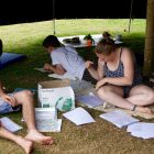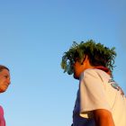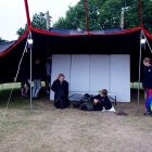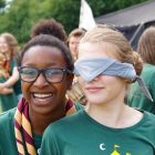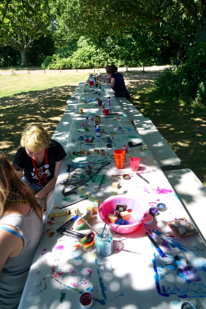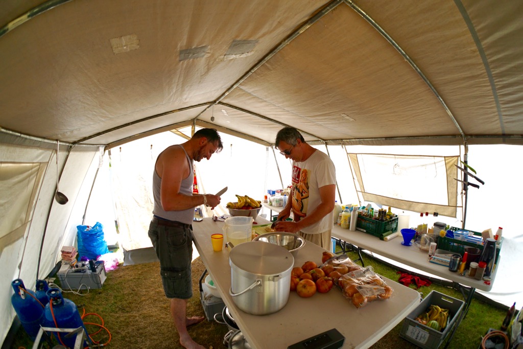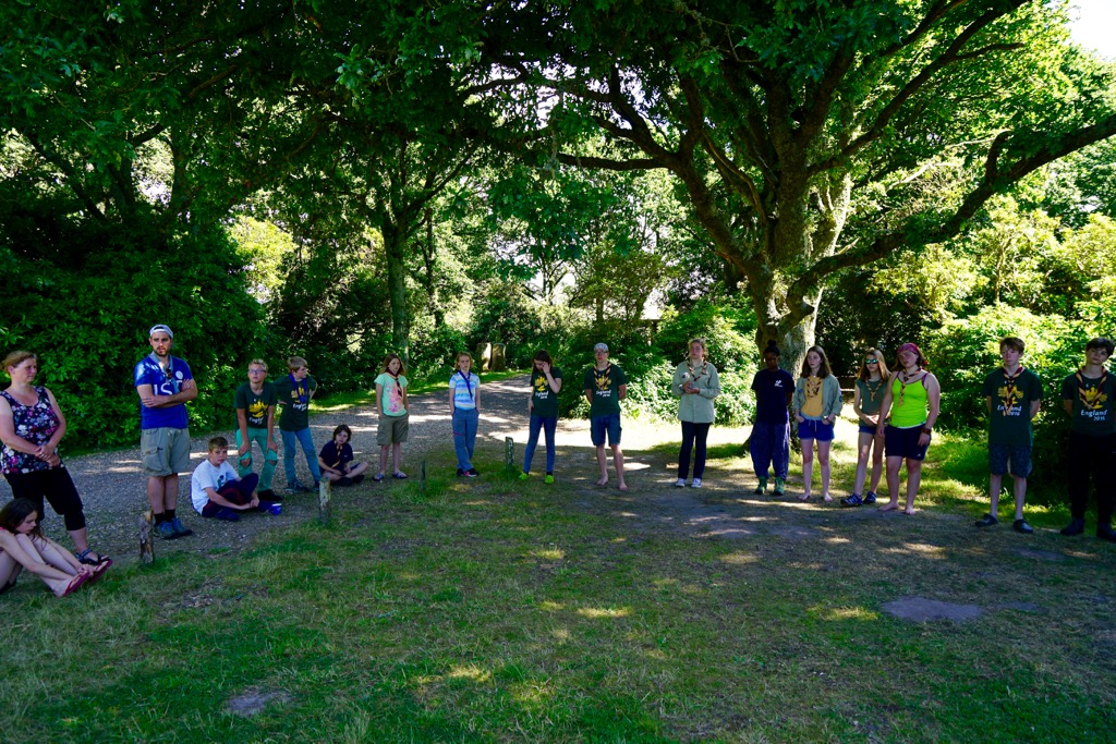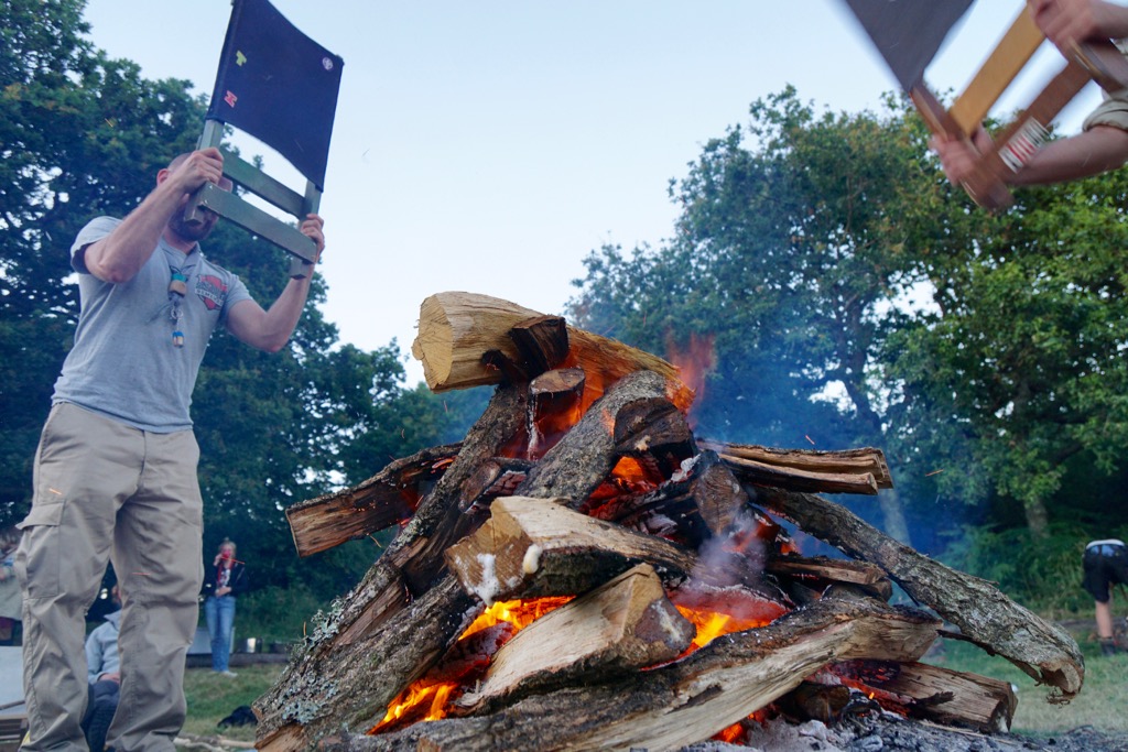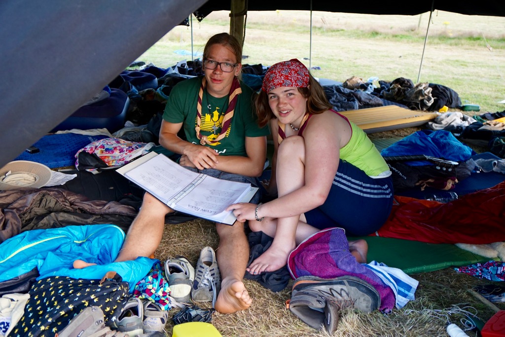 Bevor es gegen 17:00 Uhr mit dem Singewettstreit los geht, starten wir natürlich auch diesen Tag mit einem guten Frühstück und einer Morgenrunde. Während die einzelnen Gruppen, die am Abend antreten werden (fünf an der Zahl) fleißig üben, wird im Lager viel (gesellschafts-)gespielt. Bewegung wird heute wieder auf ein Minimum reduziert, denn die Sonne brät uns ordentlich von oben. Wir sind froh um jede Luft, die uns ein wenig erfrischend um die Ohren weht. Die Pfadis machen heute eine Gruppenaktion, zu der sie gestern nicht mehr gekommen sind: Sie bauen gemeinsam eine Brücke über ein fiktives Gewässer.