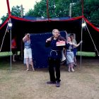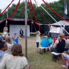 Am Tag zuvor war die Reihenfolge der Präsentationen ausgelost worden und so starten heute die Juffis mit zwei Bündischen Liedern. Toll vorgetragen und begleitet mit Gitarren und Flöten. Echte Profis! Es folgt Zaja die Solo ebenfalls ein Bündisches Lied zum Besten gibt. Auch hier: Professionell vorgetragen und voller Elan. Als Drittes treten »Bibi und Tina« auf, zwei Wölflinge und ein Juffi, die Songs von Bibi und Tina singen. Sehr süß und äußerst textsicher. Als vorletzte Gruppe zeigen die Pfadis der »8 Peiloten«, wie man ein klassisches, ungarisches Lied mit ordentlich Doppeldeutigkeit umdichten kann. Ein Lacher – und ein gut vorgetragener dazu! Zum Schluss kommt Wölfling Michael und präsentiert seine frisch gelernten Gitarrenkenntnisse der letzten Tage. Auch hier, Respekt für den Mut.