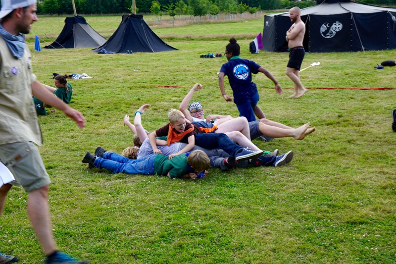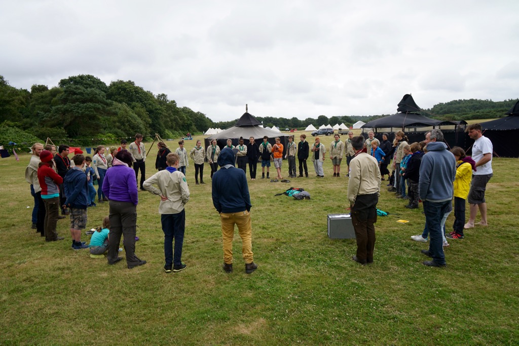 Nachdem die Leiter und Rover wieder zurück getauscht haben endet der Tag mit einem gemeinsamen Lagerfeuerabend mit Englischen Pfadfindern, die uns besuchen kommen. Wir präsentieren uns gegenseitig ein paar Tänze, Lieder und Traditionen.
