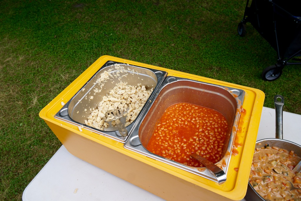 Nach diesem anstrengenden Geländespiel geht das Essen an diesem Tag in ein letztes großes Finale. Es gibt Wraps, die man sich an einem Buffet selber zusammenstellen kann.