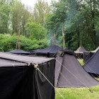 Als die Zelte dann standen gab es Milchreis als kleinen Mittagssnack. Für den Rest des Tages gab es gruppeninternes Programm. Die Pfadis suchten sich einen Ort, an dem sie Abends ihr Versprechen zusammen feiern wollten, die Juffis und Wös gingen mit Annika und Daniel in den Wald um eine Hütte zu bauen und die Rover genossen die Ruhe auf dem einsamen, wunderschönen Platz.